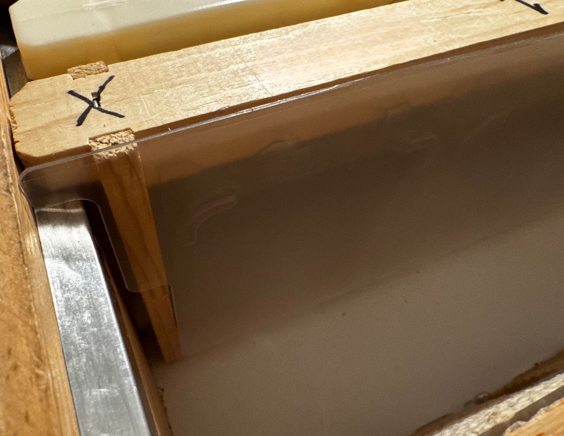- Place a Follower Sheet on either side of your SimplKomb frames, bookending the frames and separating SimplKomb from the regular drawn frames.